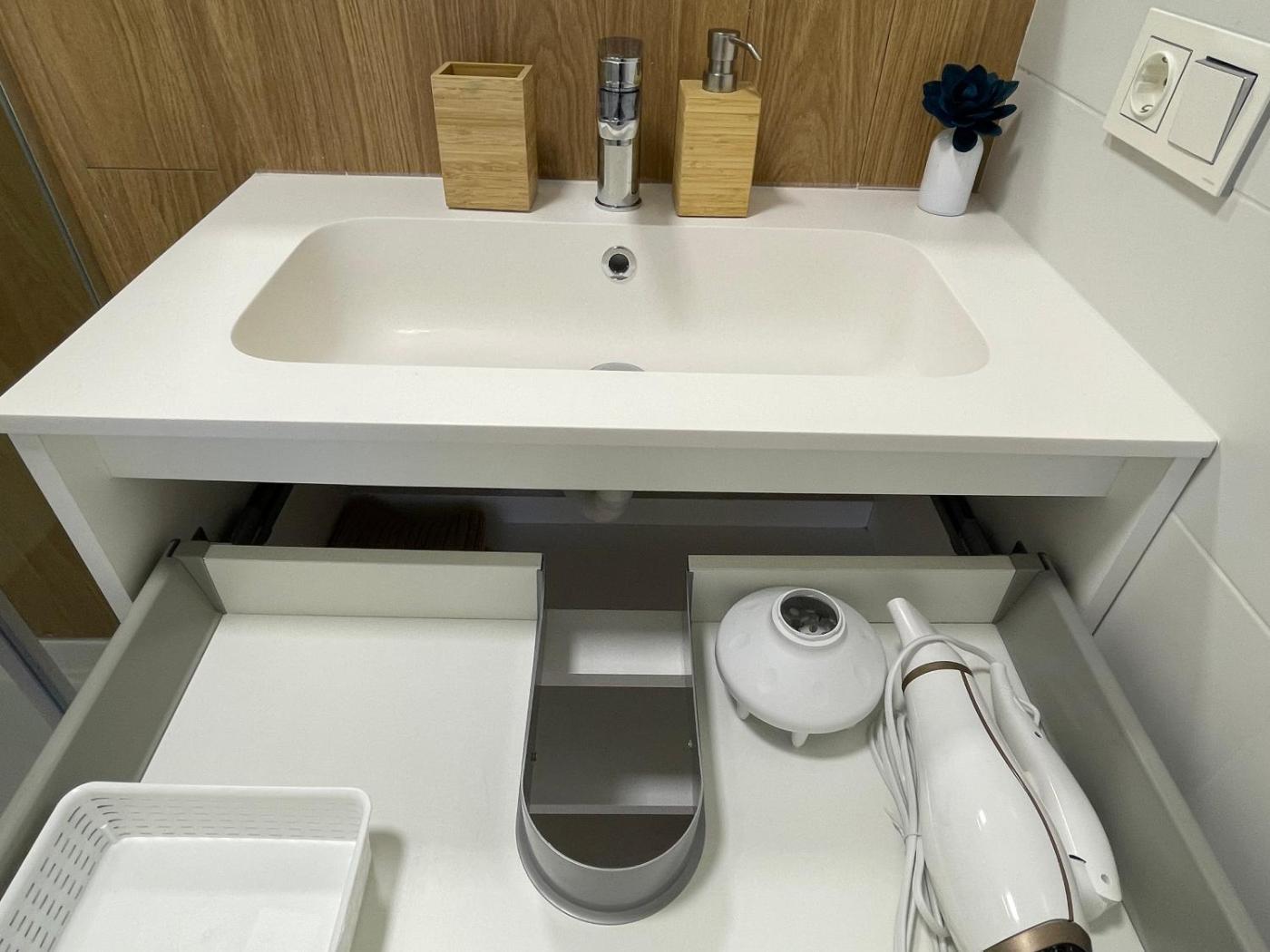 Two-Bedroom Apartment. This spacious apartment is comprised of 1 living room, 2 separate bedrooms and 2 bathrooms with a bath or a shower and a hairdryer. In the well-equipped kitchen, guests will find a refrigerator, a dishwasher, kitchenware and an oven. This air-conditioned apartment comprises a dining area, a flat-screen TV with cable channels a washing machine and a terrace. The unit offers 4 beds.