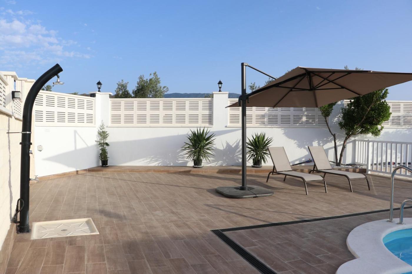 Three-Bedroom House. Guests will have a special experience as this holiday home features a private pool and a fireplace. Featuring a private entrance, this air-conditioned holiday home is comprised of 2 living rooms, 3 separate bedrooms and 1 bathroom with a bath and a shower. Guests will find a stovetop, a refrigerator, a dishwasher and kitchenware in the kitchen. The holiday home also has a barbecue. Boasting a terrace with garden views, this holiday home also offers a washing machine and a flat-screen TV with streaming services. The unit offers 6 beds.